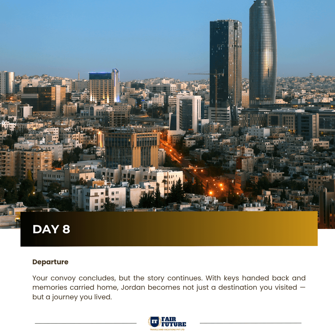 Your convoy concludes, but the story continues. With keys handed back and memories carried home, Jordan becomes not just a destination you visited — but a journey you lived.